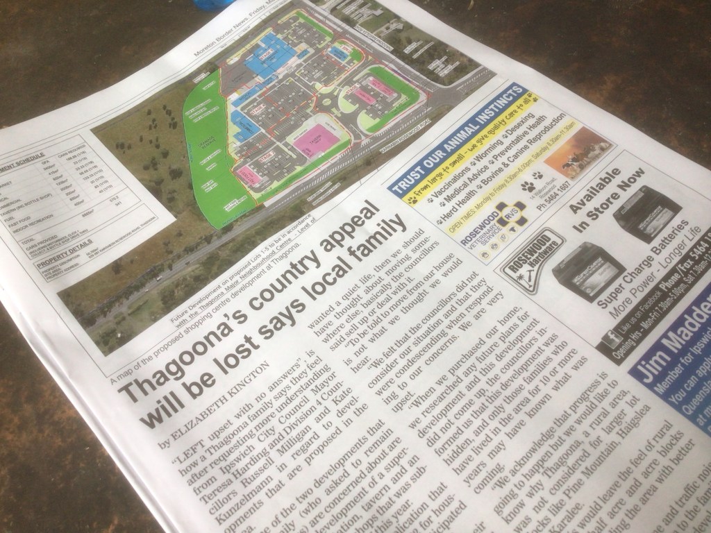It’s a interesting stance by our present councillors about developers having the lead and the residents have to justify their existence to retain their lifestyle, especially when the only services we have are very basic, unsealed roads no kerb and channeling and extremely dodgy flood mitigation now, and a expectation for us to trust in the town planners.