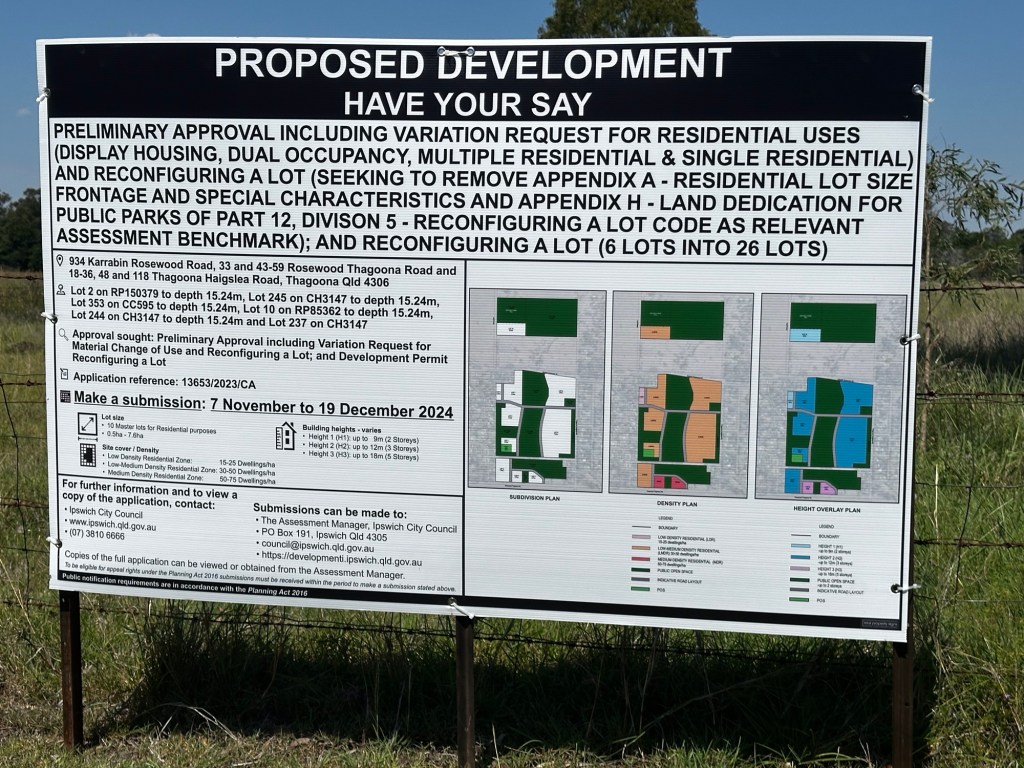 Notice has been served of a development on the High Side of Thagoona Haigslea Road up from the Railway Station